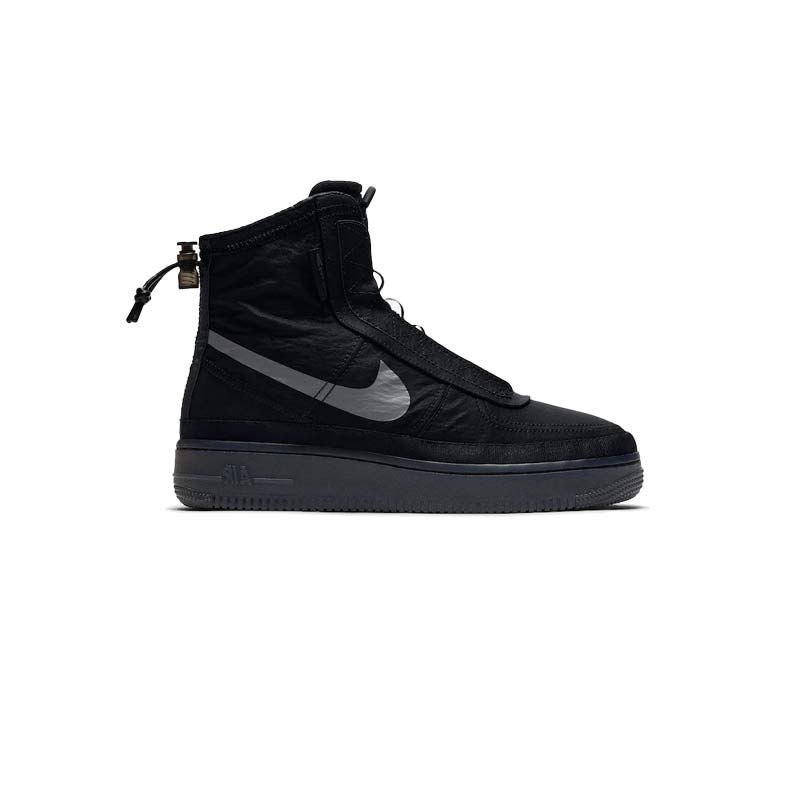 - بوت ساقدار ضدآب نایک ایرفرس شل مشکی Nike Air Force 1 Shell Boot Black دارای رویه ای مشکی رنگ از جنس پلاستیک نایلونی است و به دلیل مرغوب بودن جنس رویه ضد آب می باشد و این ویژگی کفش را برای استفاده در روزهای بارانی مناسب کرده است.
